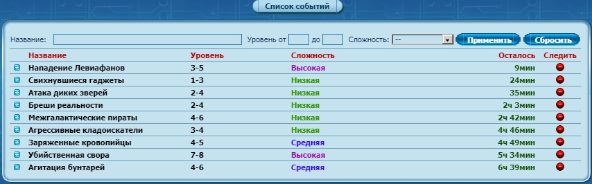 В игре существует функционал автоматических игровых событий. События делятся на два типа: