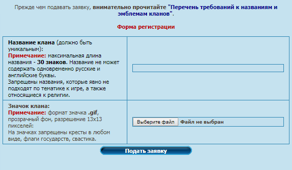 Заявки на создание клана рассматриваются не более 30 дней. В случае, если ваша заявка не одобрена, вы увидите комментарий от администрации с причиной отказа. В таком случае вам необходимо будет исправить замечания и подать повторную заявку.